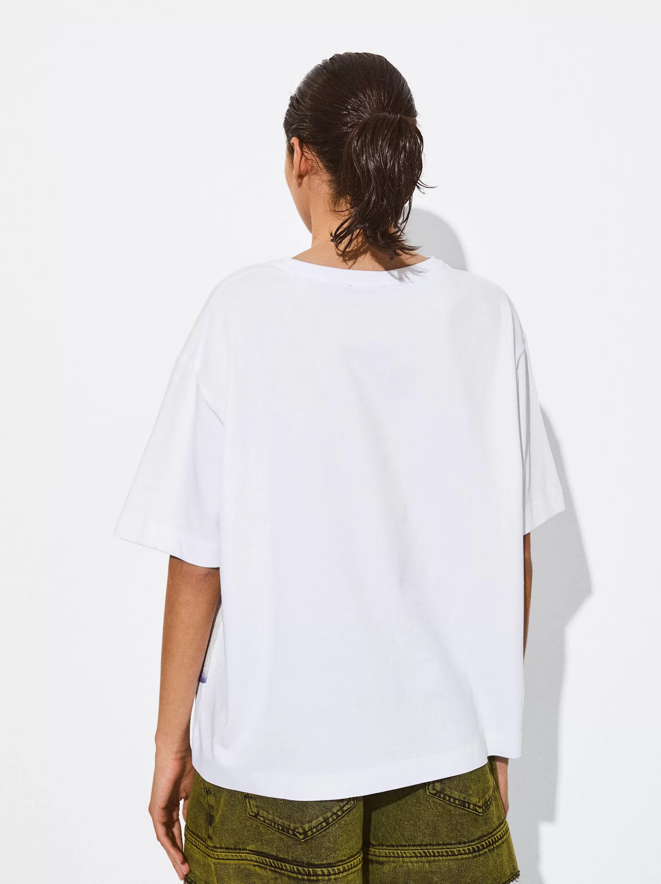 Camiseta estampada de manga corta, confeccionada en tejido 100% algodón. Cuello redondo.Producto disponible en talla única, diseñado para crear las siluetas más variadas y adaptarse a diferentes tipos de cuerpo.La…