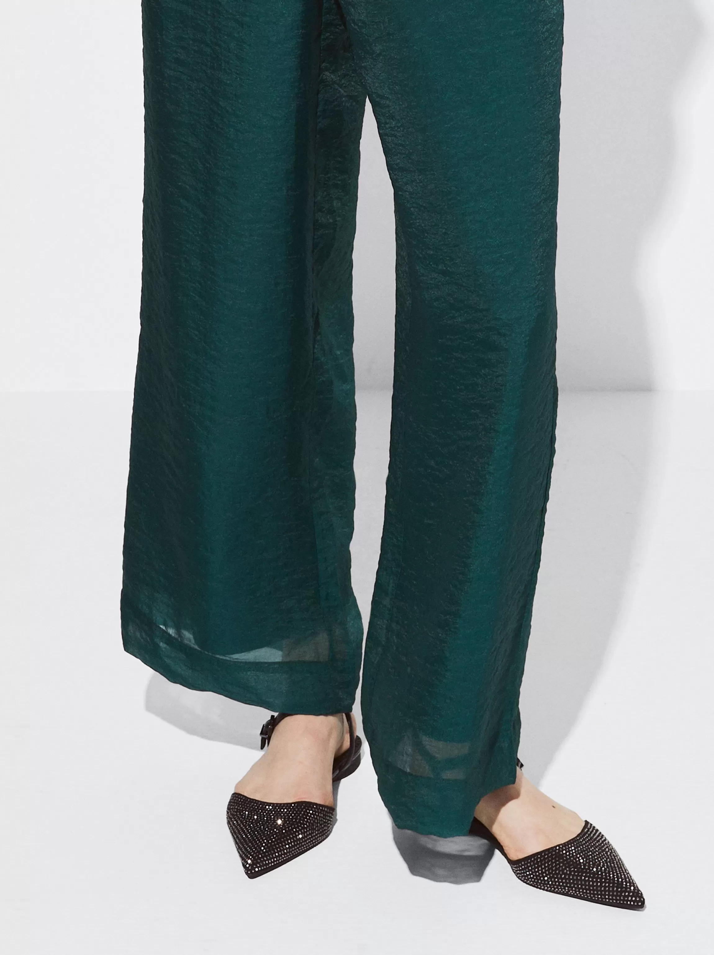 Bailarina destalonada, con parte delantera con brillantes. Acabada en punta. Cierre de hebilla en pulsera de tobillo.Composición Interior: 70% Poliuretano, 30% PoliésterPlantilla: 100% PoliuretanoSuela: 100% CauchoCuerpo: 80% Poliéster, 20% Poliuretano…